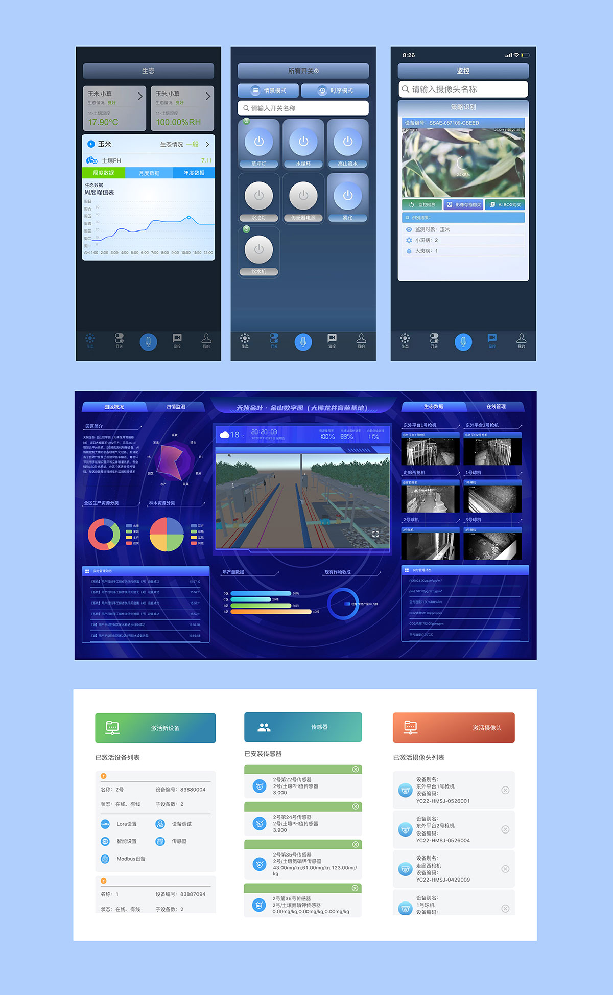 2.設備管理:網(wǎng)關、LoRa、傳感器、繼電器、攝像頭等硬 件設備統(tǒng)一管理;