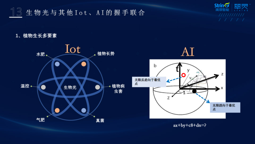 同時(shí)還介紹了滴翠智能為木林森等這類積極且先進(jìn)的跨界進(jìn)入農(nóng)業(yè)領(lǐng)域的客戶提供在不同場(chǎng)景下的物聯(lián)網(wǎng)數(shù)字化+生物光應(yīng)用解決方案,分享了木林森新疆奎屯、蒙古等地植物方艙等應(yīng)用案例。