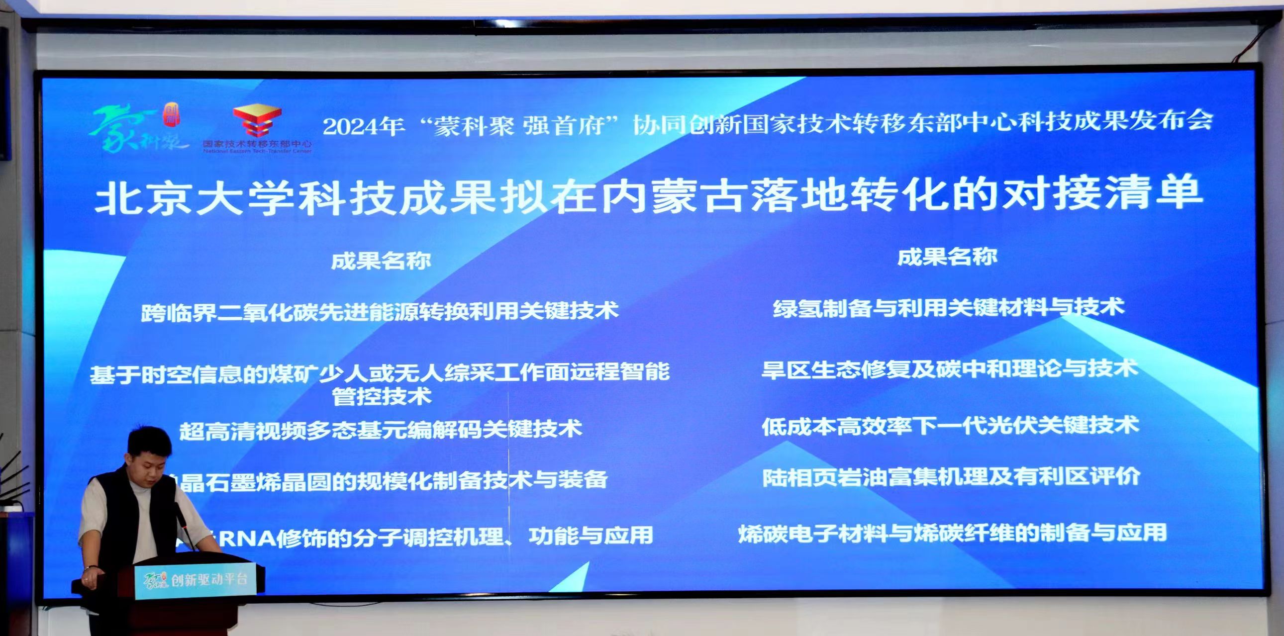 會(huì)上,國家技術(shù)轉(zhuǎn)移東部中心同時(shí)對(duì)外發(fā)布了北京大學(xué)科技成果擬在內(nèi)蒙古落地轉(zhuǎn)化的對(duì)接清單。
